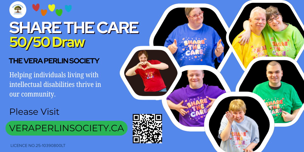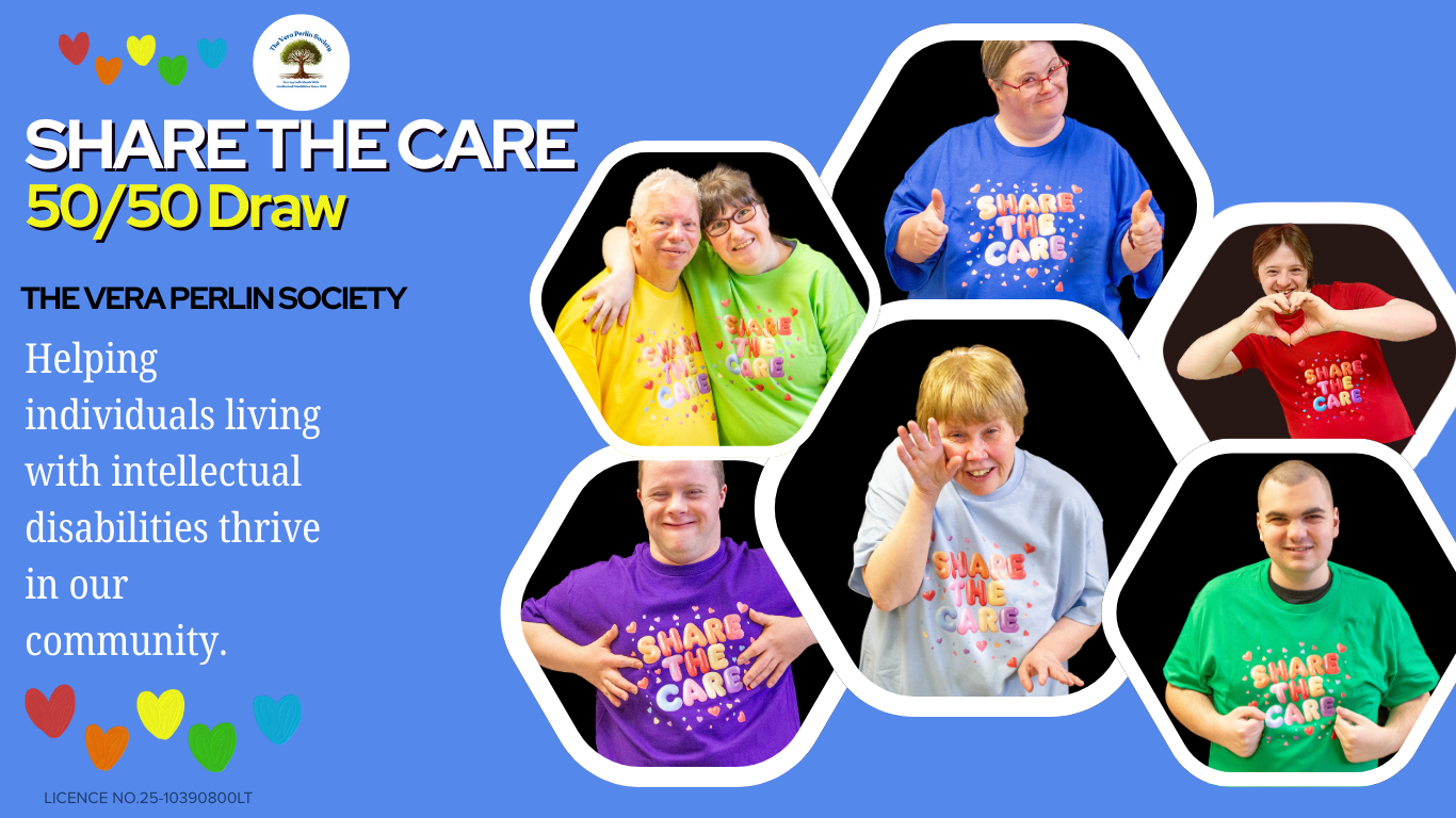 The Vera Perlin Society is thrilled to launch our Share the Care 50/50 Draw—supporting programs for individuals with intellectual disabilities and giving you the chance to win big.